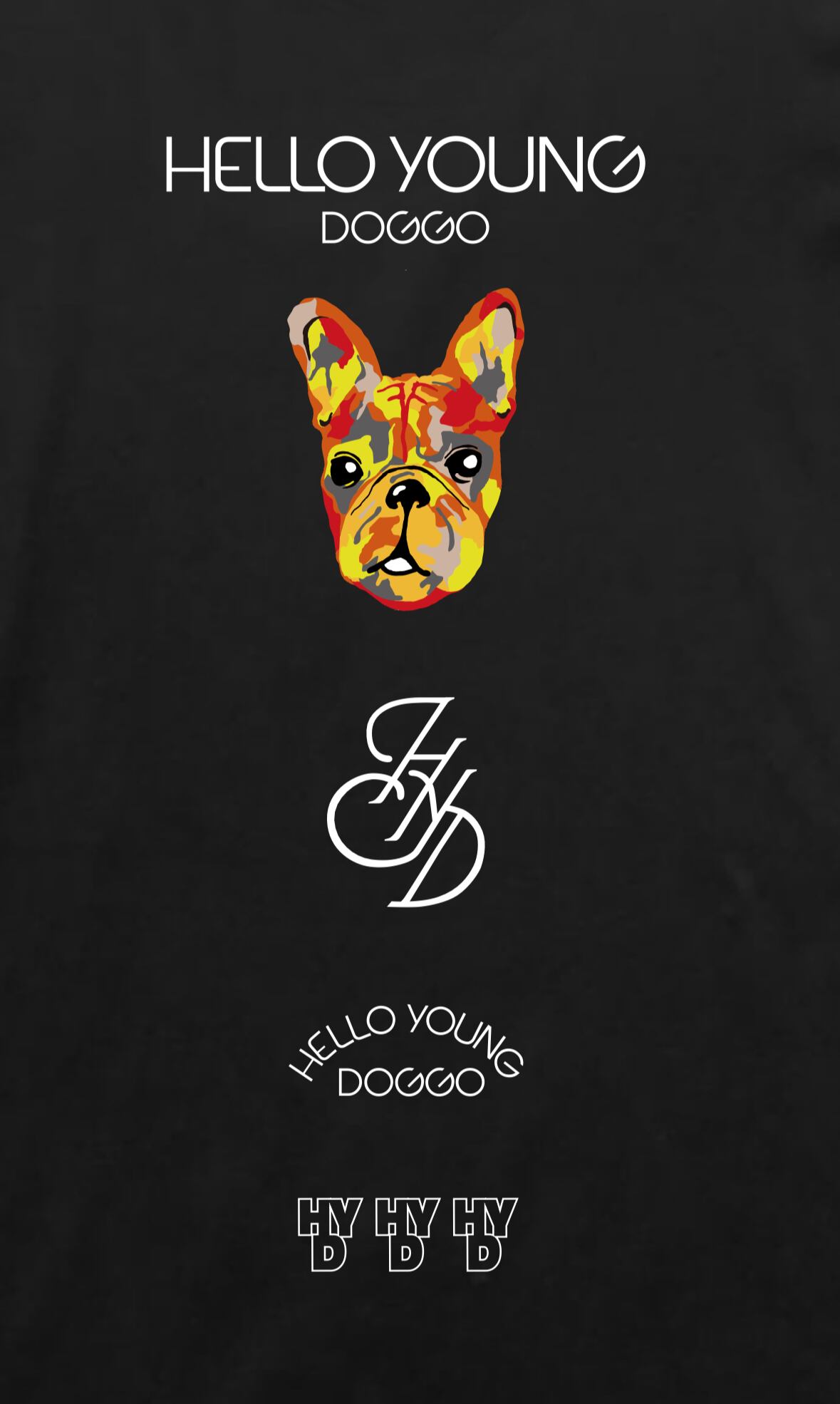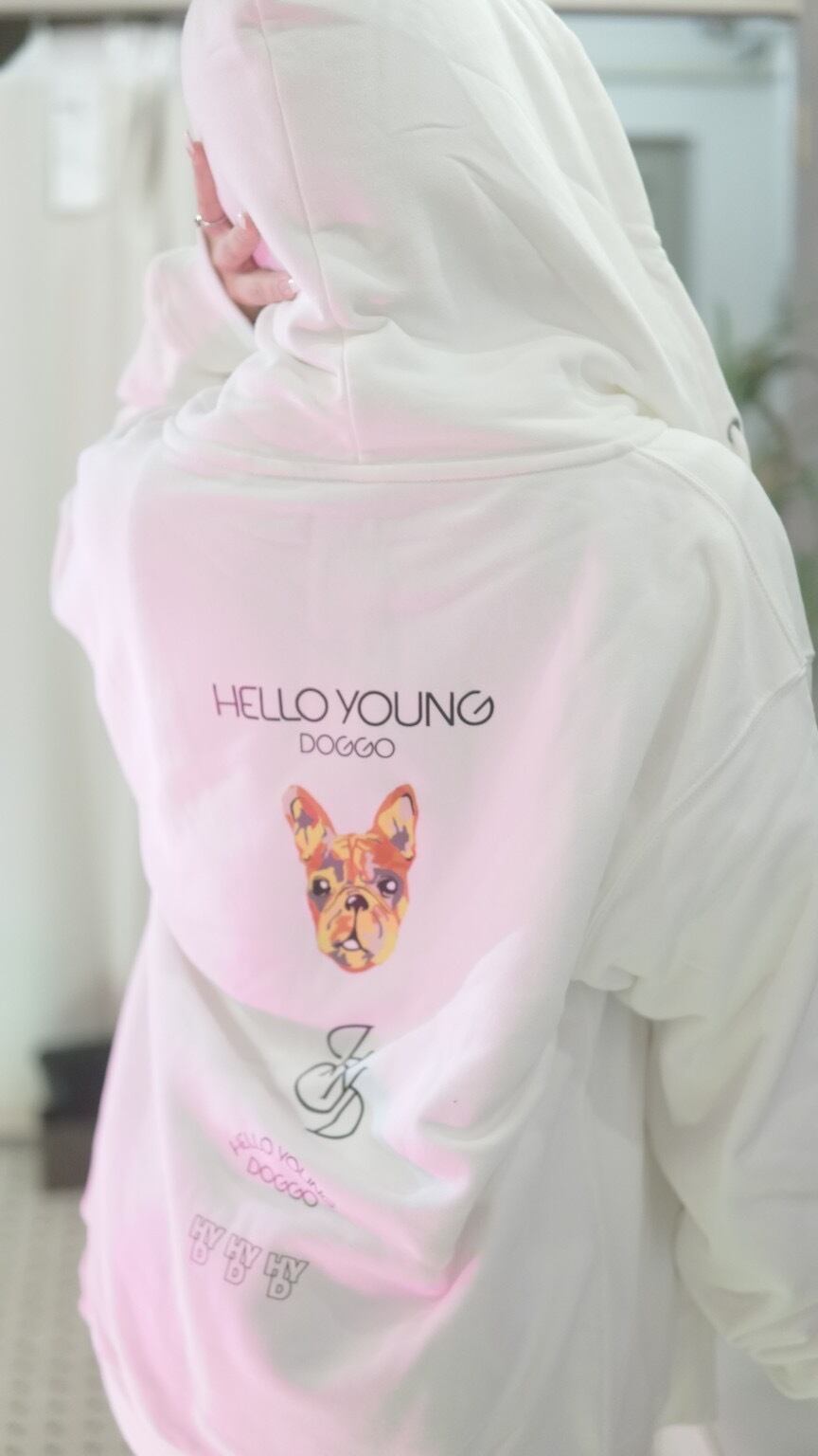 "HELLO YOUNG DOGGO"の可愛らしいオリジナルロゴが盛り沢山。