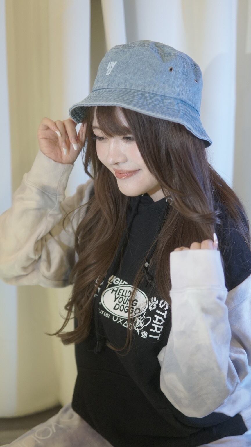 "HELLO YOUNG DOGGO"のロゴをフロント、