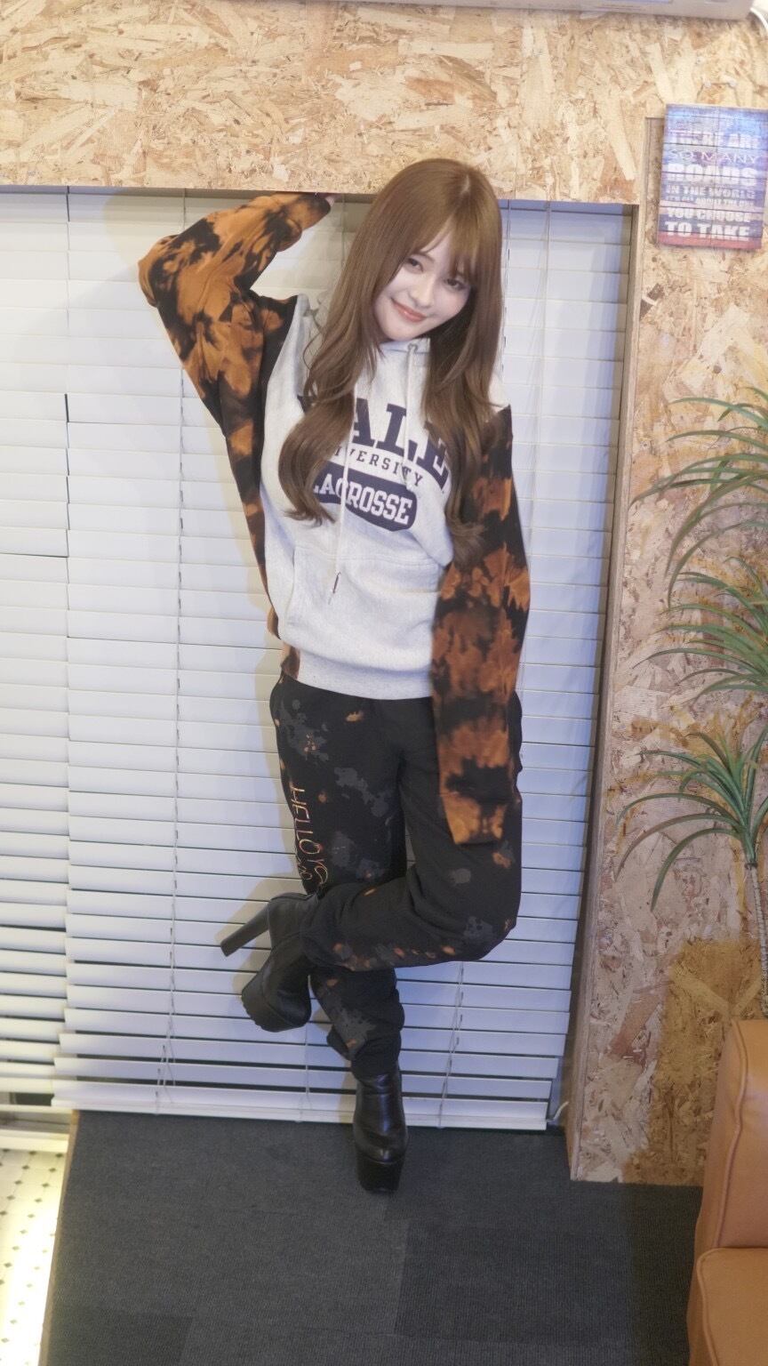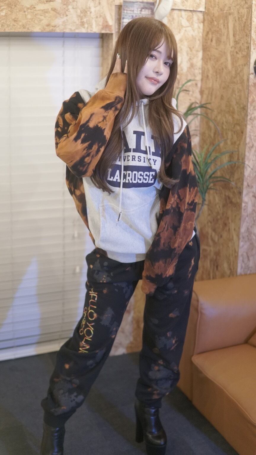 一枚でも勿論おしゃれですが、タイダイのパーカーとセットアップにしても